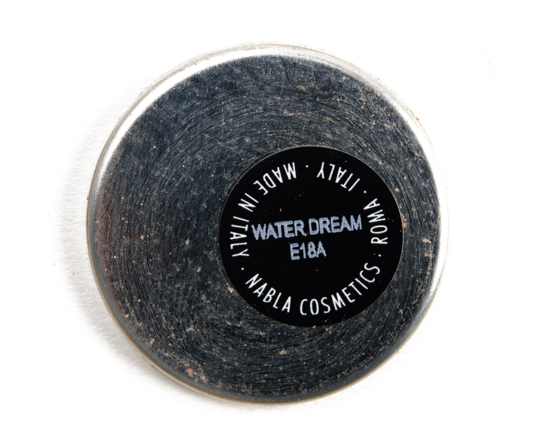 NABLA Cosmetics Water Dream Top Coat Wet & Dry Eyeshadow ($12.00 for 0.09 oz.) is a soft, peachy beige with warm undertones and a sparkling finish. It had sheer coverage applied dry and mostly opaque coverage applied wet. The texture was denser but thinner with some noticeable grit/texture from the amount of sparkle in it. I would not use this dry without a tacky base underneath as the fallout was tremendous and caused my eyes to water until I removed it. I had better wear when I just used it with a dampened brush and applied it to my lower lash line to avoid having fallout that caused watery eyes (so I could at least test for longevity). It lasted for seven hours but had moderate fallout over time (even applied with a dampened brush).